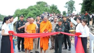 ខេត្តកំពង់ធំ៖ សិស្សានុសិស្ស និងប្រជាពលរដ្ឋនៅឃុំដងកាំបិត ស្រុកសណ្តាន់ ខេត្តកំពង់ធំ បានថ្លែងនូវការអបអរសាទរ និងសូមគោរពថ្លែងអំណរគុណដ៏ជ្រាលជ្រៅជាទីបំផុតចំពោះសម្តេចមហាបវរធិបតី ហ៊ុន ម៉ាណែត នាយករដ្ឋមន្ត្រី នៃព្រះរាជាណាចក្រកម្ពុជា និងលោកជំទាវបណ្ឌិត ពេជ ចន្ទមុន្នី តាមរយៈឯកឧត្តម នួន ផារ័ត្ន អភិបាលខេត្តកំពង់ធំ ដែលបានជួយឧបត្ថម្ភសាឡាងមួយគ្រឿង សម្រាប់ធ្វើដំណើរឆ្លងកាត់ដងស្ទឹងសែន ដោយមិនគិតប្រាក់ ។ ដែលពិធីប្រគល់នេះ ប្រព្រឹត្តទៅនៅព្រឹកថ្ងៃទី ២០ ខែវិច្ឆិកា ឆ្នាំ២០២៥ នៅកំពង់ចម្លងឃុំដងកាំបិត ស្រុកសណ្តាន់ ស្ថិតក្រោមអធិបតីភាពឧត្តមសេនីយ៍ទោ សោម ស៊ុន មេបញ្ជាការ តំបន់ប្រតិបត្តិការសឹករង អនុប្រធានក្រុមការងាររាជរដ្ឋាភិបាលចុះមូលដ្ឋានស្រុក និងជាប្រធានក្រុមការងារចុះមូលដ្ឋានឃុំដងកាំបិតស្រុកសណ្តាន់ ខេត្តកំពង់ធំ ។