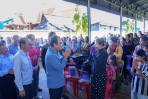 ក្នុងឱកាសនោះ ឯកឧត្តមរដ្ឋមន្ត្រី បានពាំនាំនូវការផ្ដាំផ្ញើសាកសួរសុខទុក្ខពីសំណាក់សម្តេចតេជោ ហ៊ុន សែន ប្រធានព្រឹទ្ធសភា និងសម្តេចកិត្តិព្រឹទ្ធបណ្ឌិត ប៊ុន រ៉ានី ហ៊ុនសែន និងសម្តេចធិបតី ហ៊ុន ម៉ាណែត នាយករដ្ឋមន្ត្រីនៃព្រះរាជាណាចក្រកម្ពុជា និងលោកជំទាវបណ្ឌិត ពេជ ចន្ទមុន្នី ហ៊ុនម៉ាណែត ជូនដល់បងប្អូនប្រជាពលរដ្ឋភៀសសឹកដោយសារការឈ្លានពានរបស់កងទ័ពសៀមមកលើដែនអធិបតេយ្យកម្ពុជា ដែលកំពុងស្នាក់នៅតាមទីតាំងសុវត្ថិភាពនានា។