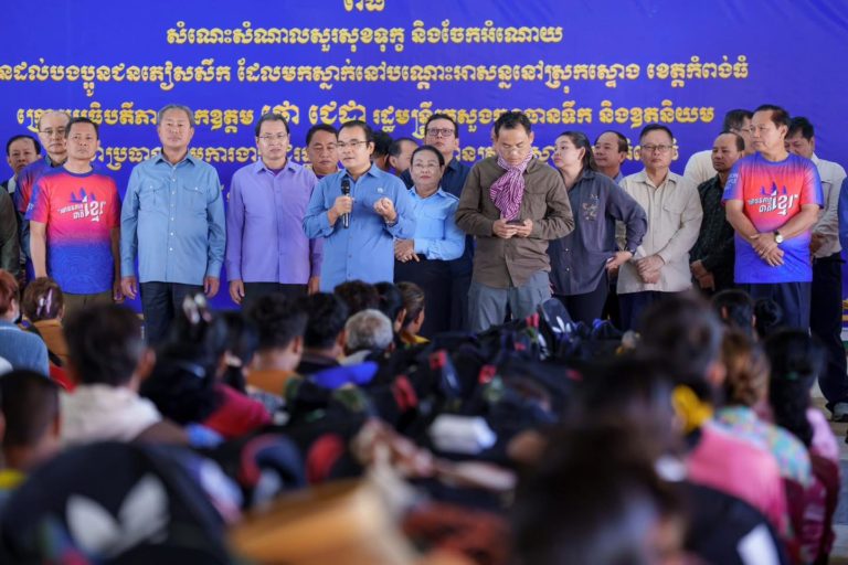 នាព្រឹកថ្ងៃព្រហស្បតិ៍ ១៣រោច ខែមិគសិរ ឆ្នាំម្សាញ់ សប្តស័ក ពុទ្ធសករាជ ២៥៦៩ ត្រូវនឹងថ្ងៃទី១៨ ខែធ្នូ ឆ្នាំ២០២៥នេះ ឯកឧត្តម ថោ ជេដ្ឋា រដ្ឋមន្ត្រីក្រសួងធនធានទឹក និងឧតុនិយម អនុប្រធានក្រុមការងាររាជរដ្ឋាភិបាលចុះមូលដ្ឋានខេត្តកំពង់ធំ និងជាប្រធានក្រុមការងាររាជរដ្ឋាភិបាលចុះមូលដ្ឋានស្រុកស្ទោង ព្រមទាំងឯកឧត្តម នួន ផារ័ត្ន អភិបាលនៃគណៈអភិបាលខេត្តកំពង់ធំ និងក្រុមការងារ បានអញ្ជើញនាំយកអំណោយជាគ្រឿងឧបភោគបរិភោគ ស្បៀងអាហារ សម្ភារៈប្រើប្រាស់ និងថវិកា ចែកជូនដល់បងប្អូនប្រជាពលរដ្ឋភៀសសឹកដែលកំពុងស្នាក់នៅតាមទីកន្លែងសុវត្ថិភាព ក្នុងភូមិសាស្ត្រស្រុកស្ទោង ខេត្តកំពង់ធំ។